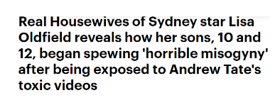 Complaining about your 10 and 12 year old children displaying “horrible misogyny” and it’s Andrew Tate’s fault? LOL maybe your you and your baby daddy needs to step up and teach your sons a thing or two.